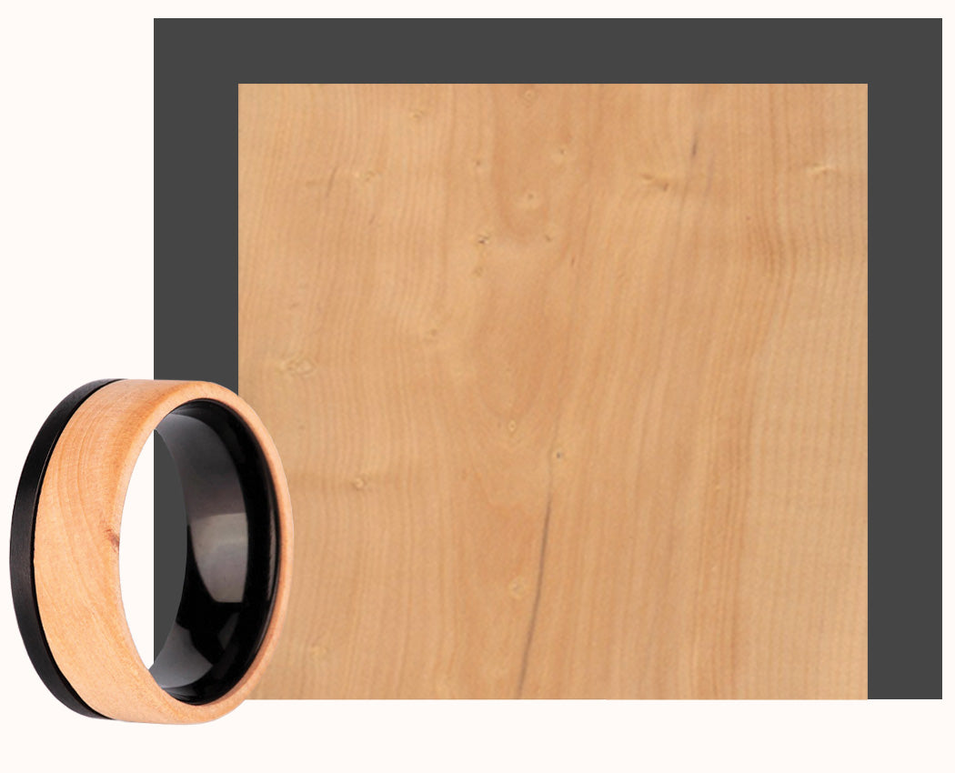 Le buis et sa couleur claire, sont ici mis en valeur par une bande noire qui vient le sublimer. Avec des lignes épurées et élégantes, c’est l'alliance rêvée pour une demande en mariage.
