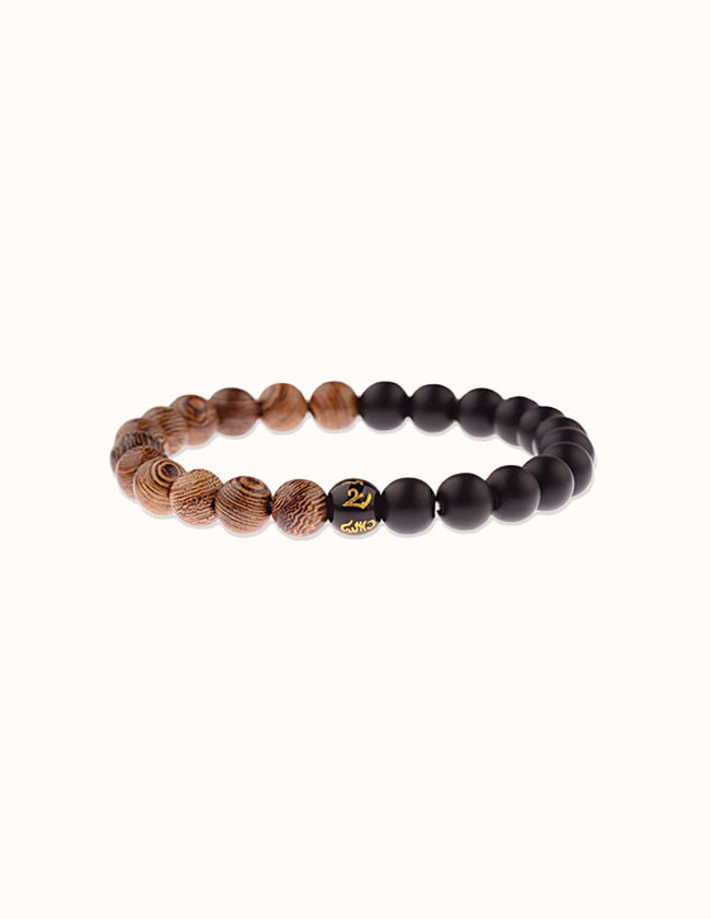 Succombez au charme d’un bracelet tibétain fabriqué avec des perle d’onyx et de bois massif.