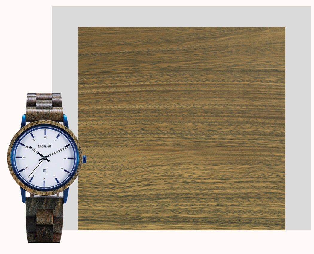 Conçue en bois massif, ce garde-temps arbore une somptueuse finition. Modèle à quartz, son style chic et décontracté sera idéal pour sublimera le poignet de madame durant toutes occasions. Avec des couleurs atypique, il est composé d’un boîtier de 40 mm en acier inoxydable 316L. Conçu à la main, les stries de la matière sont magnifié et sont un délice pour les yeux. Doté d’un fond de boîte vissé, sa bordure droite présente une couronne crantée teintée de bleu. Celle-ci permettra de contrôler les indicateurs proposé par le cadran. Celui-ci est dominé par un verre minéral, qui le protégera des ternissures.