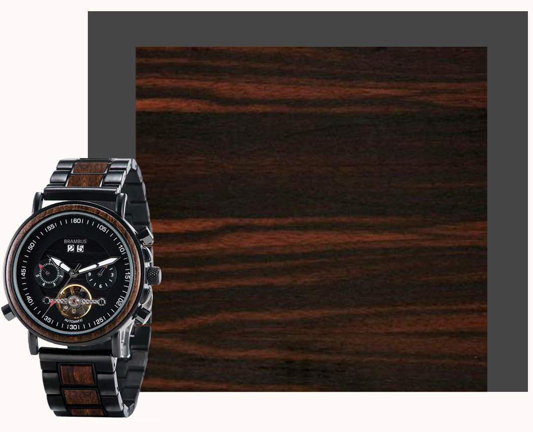 Il allie sublimement le bois et le métal pour en faire un bijou au design somptueux. La pièce horlogère présenté se dote d’un boîtier en acier inoxydable qui résistera au temps. Avec un diamètre de 44 millimètres et une épaisseur de 14 millimètres, il protégera le mouvement Miyota qui anime la montre. S’ajoute à cela, un verre minéral en saphir enduit qui propose sa protection au cadran.