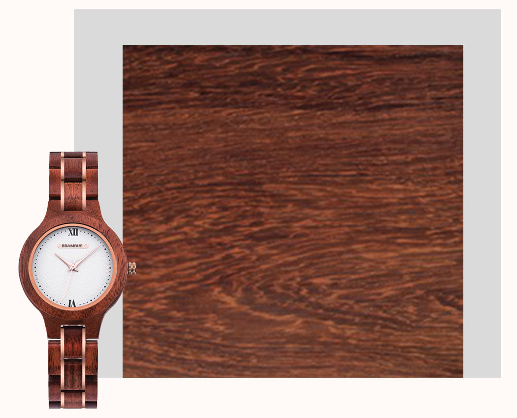 Voici une montre pour femme au style minimaliste qui réunis somptueusement l'élégance et le raffinement du bois de santal.