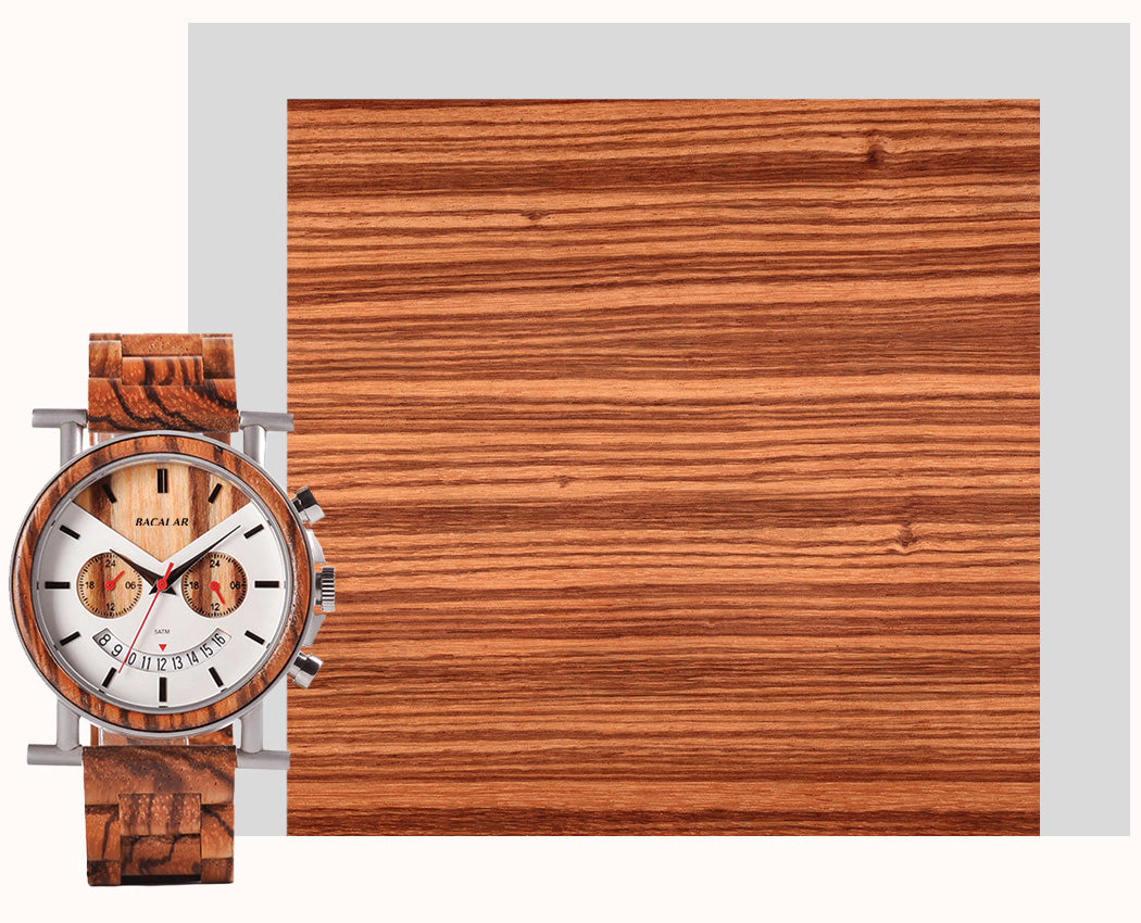 Le Zebrawood est très connu pour son dessin ressemblant à celui d’un zèbre. Il provient généralement d’Afrique de l’Ouest et du Congo. Ses cernes de croissance sont très prononcés, ce qui lui confère une finition exceptionnelle. C’est un bois de luxe à la texture grossière avec des pores ouverts. En règle générale, il a un grain ondulé et enchevêtré.