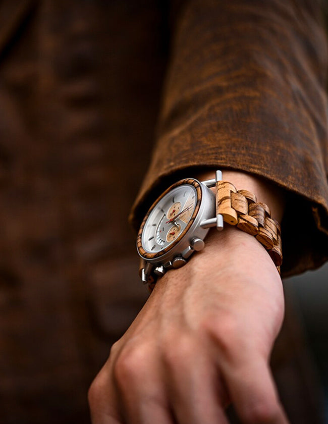 Cependant, elles ne sont pas recommandées pour les activités telles que la natation, la plongée sous-marine ou toute autre activité où votre montre en bois sera entièrement immergée dans l'eau. Cela pourrait nuire au mouvement de la montre, ainsi qu'au bois lui-même.