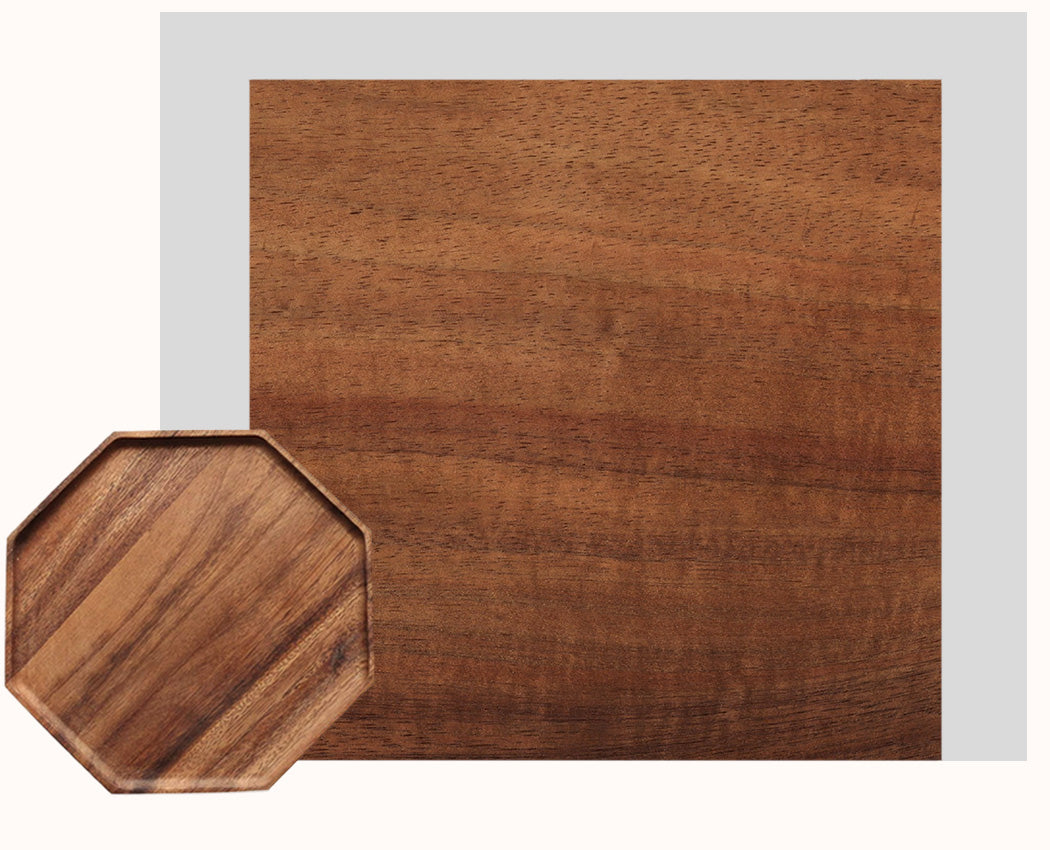 Le bois y est poli avec un grain fin pour avoir une surface douce au toucher quant de fines bordures sont dessinées afin de retenir ce que vous placerez sur votre plateau. Elles permettront d'éviter les malencontreuses chutes d’objets. Enfin, le dessous de chaque modèle usiné de manière à s'empiler parfaitement et ainsi prendre le moins de place possible.
