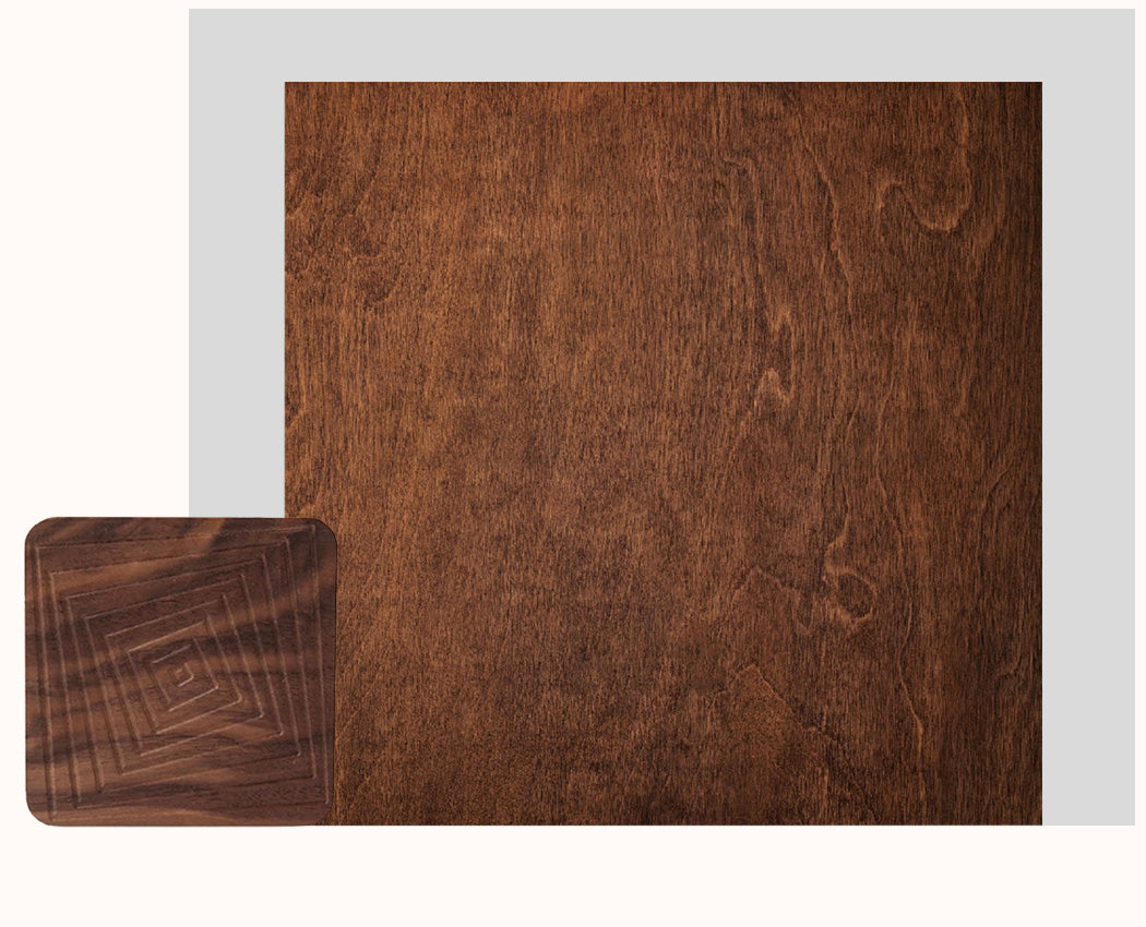 Proposé dans trois différentes formes, leur fabrication à demandé l’expertise d'artisans chevronnés. Conçu à la main, chaque napperon est réalisé dans un morceau de bois brut. Après avoir taillé la forme du sous verre, ceux-ci sont gravés avec précision pour ensuite être longuement polis. Enfin, c’est une huile végétale qui permet de les lasurer, afin de les protéger de l'humidité tout en faisant ressortir la beauté du grain de la matière.