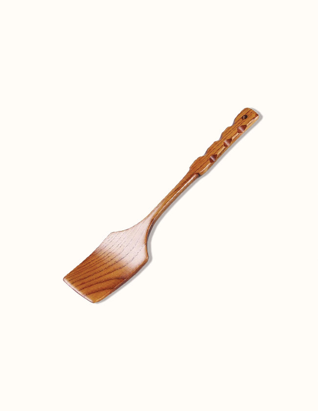 Ergonomique et élégante, la partie supérieure de son manche est habillée d’un design chic et raffiné qui donne du caractère à cette pièce de bois. Avec un manche de 35 centimètres, elle est taillée pour racler facilement une moelle de fromage tendre et fondue. Elle pourra également vous permettre de retourner facilement des viandes comme des légumes lors de leur cuisson.