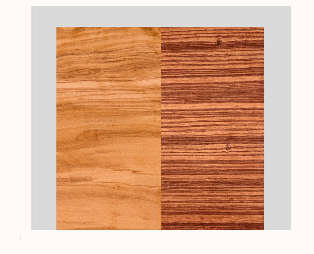 Du sous règne Tracheobionta, l’Olivier est connu pour son fruit dont on extrait une huile alimentaire. L’essence est aussi connue pour son bois aux couleurs brunes et aux veinures singulières. Avec des lignes droites et circulaires, ce dessin unique est convoité pour les objets rares.